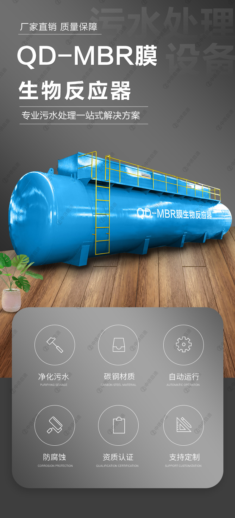 本設(shè)備是中僑啟迪使用新技術(shù)新工藝生產(chǎn)的新型兼氧MBR膜生物反應(yīng)器
