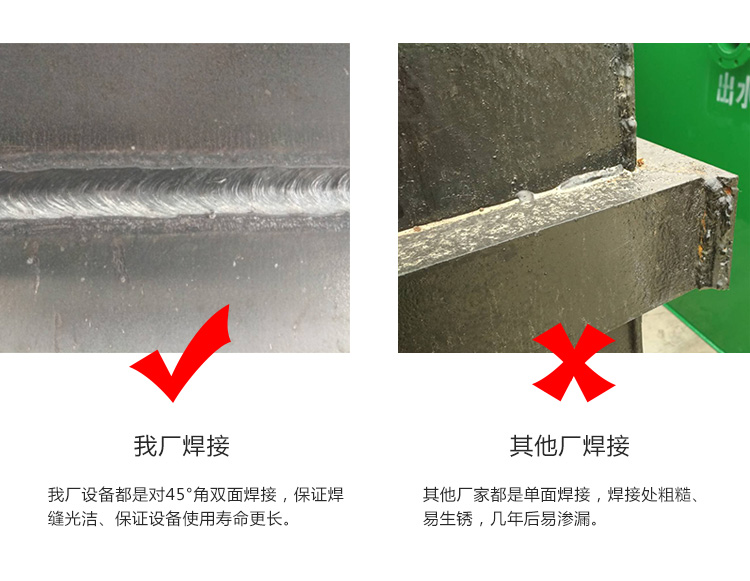 設(shè)備的使用年限和焊接工藝是分不開的、我們的設(shè)備焊接工藝都是雙面焊接、內(nèi)板、外板、人孔、隔板、側(cè)板、端板等全都是雙面焊、所有板面表面都進(jìn)行除油除銹處理,保證焊接鋼板接合度、平板焊接焊縫1mm、焊接完畢焊縫進(jìn)行清渣處理,保證焊縫光潔。